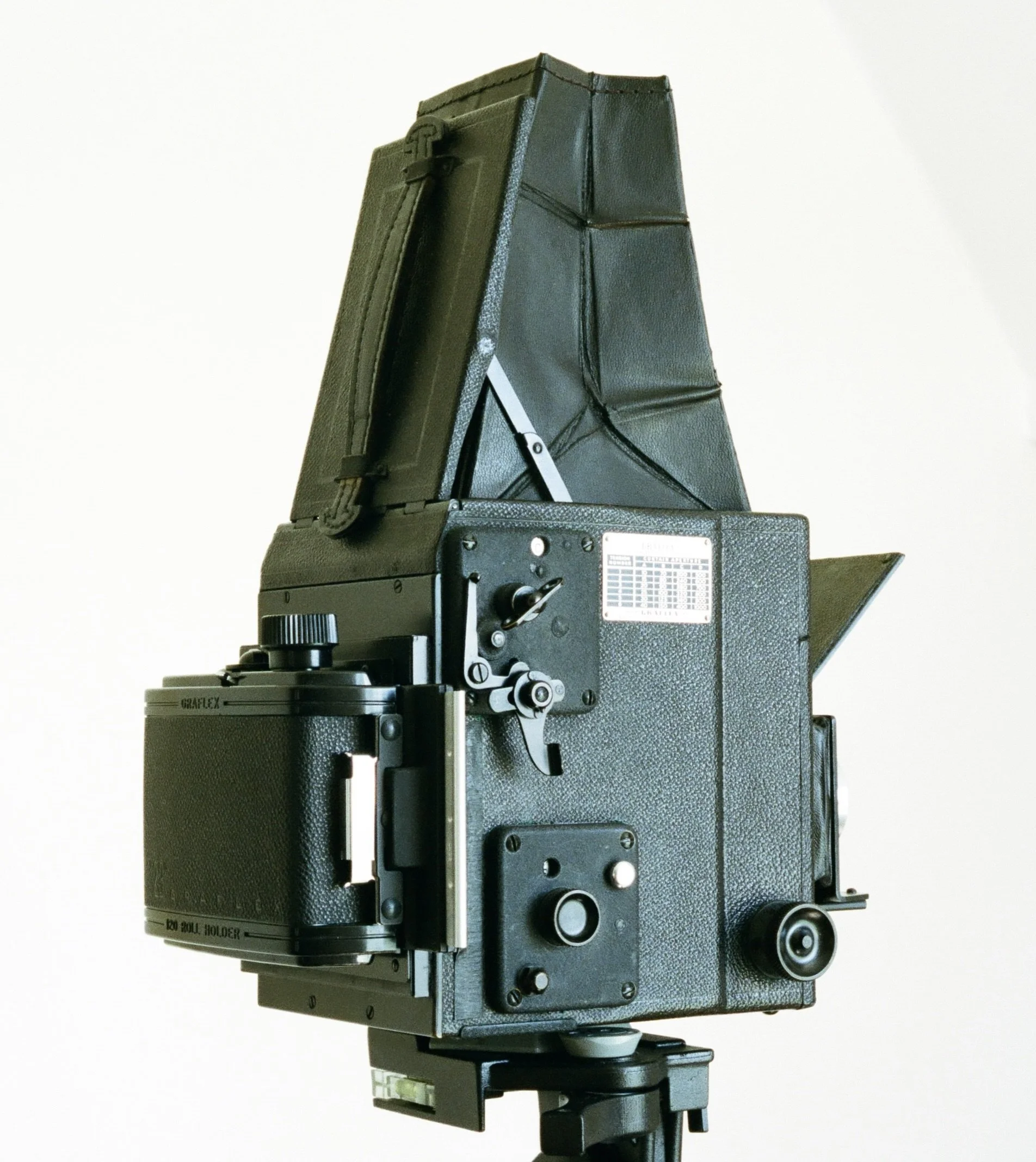 Unlike the Mamiya, the Graflex is not a system camera. Only the back can be swapped out, the lens and finder are fixed. The Graflex wins in terms of hand-held ergonomics and it produces a larger negative (6x8 cm v. the Mamiya’s 6x7).