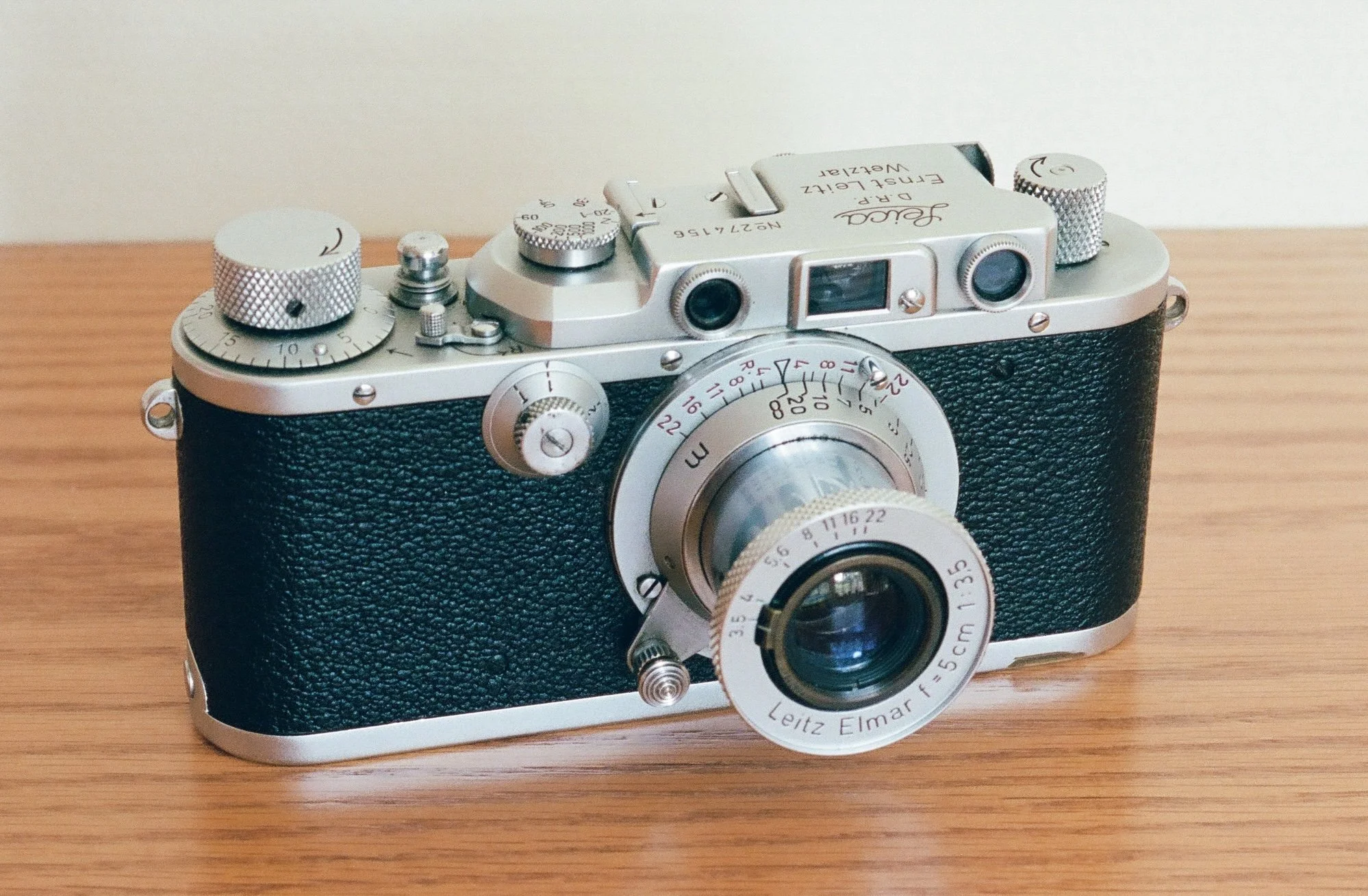 Leica IIIa with a 5cm f/3.5 Elmar This lens folds extra flat.