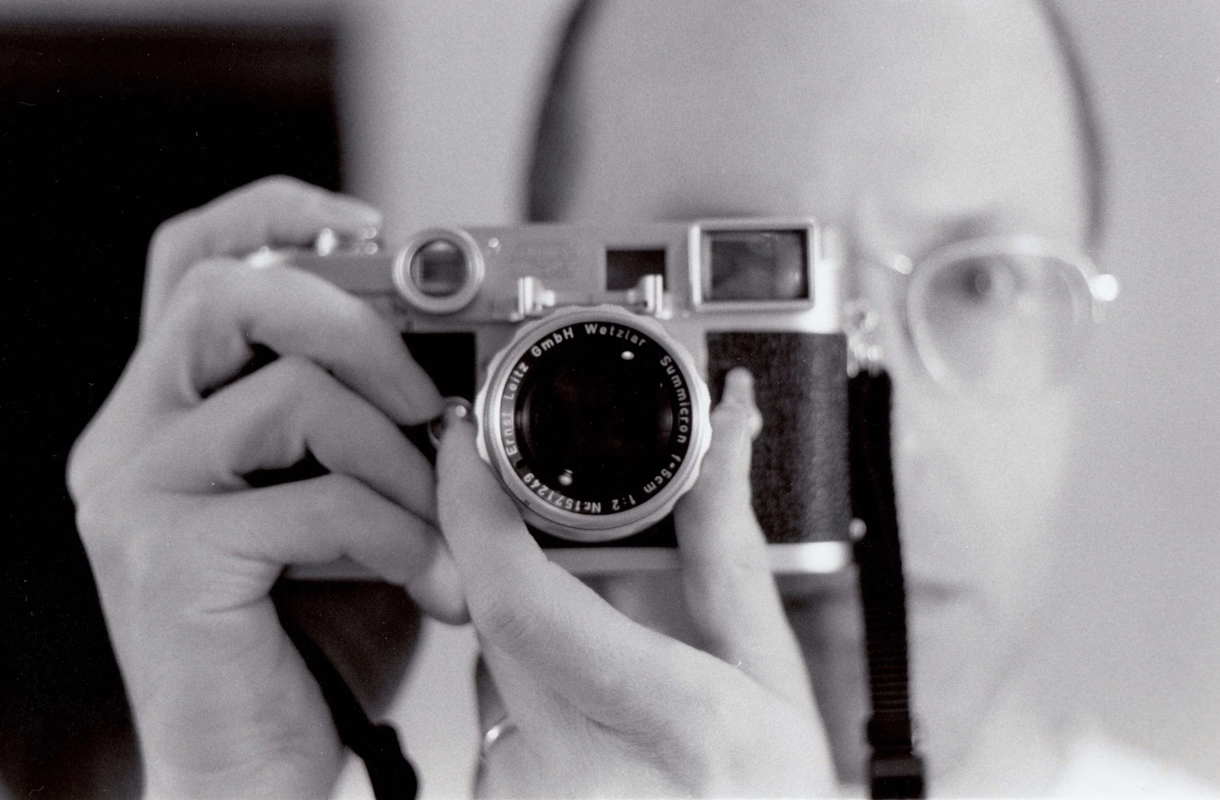 Mirror selfie Leica M3, 50mm f/2 Dual Range Summicron lens, Tri-X film, early 2000s..