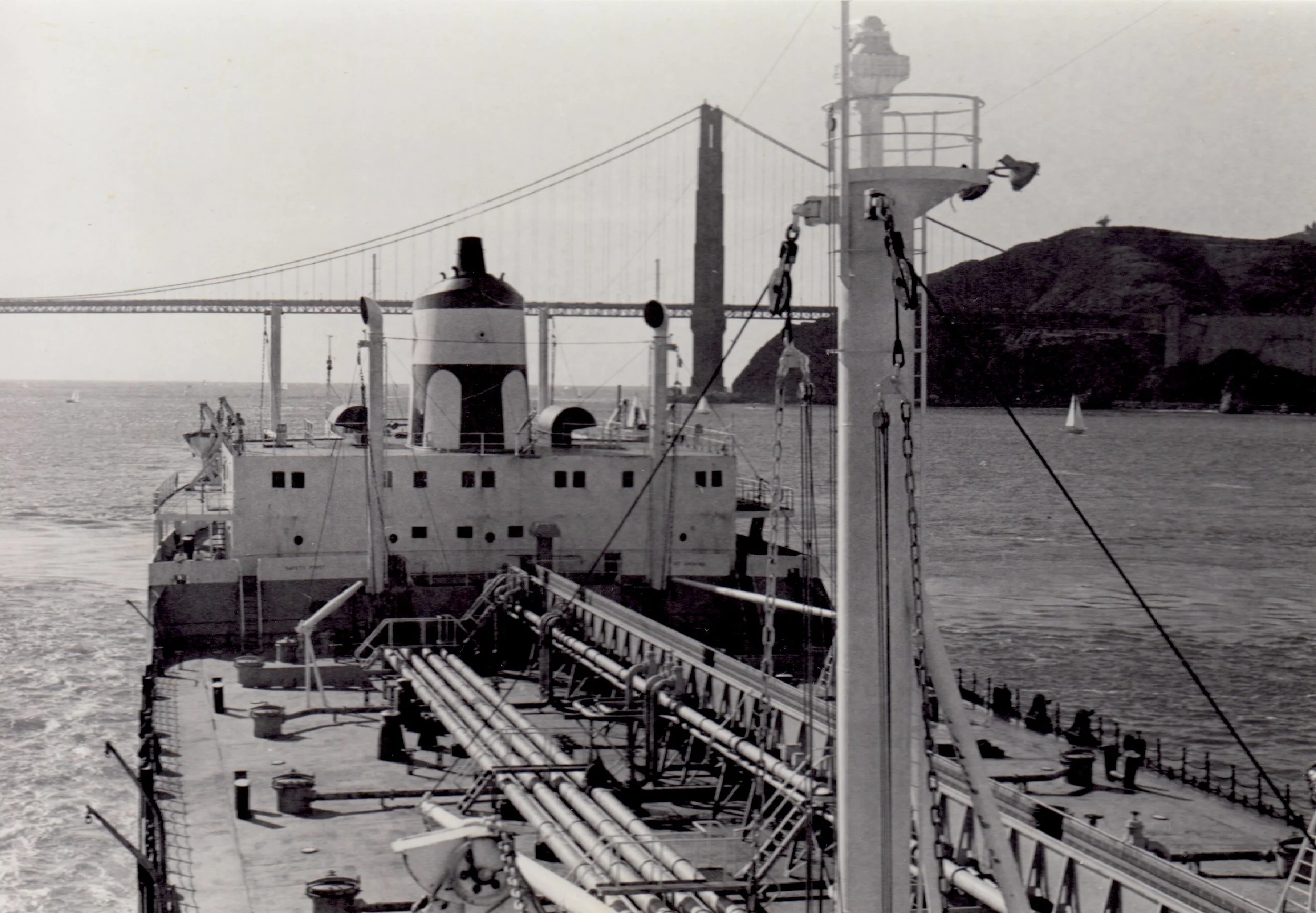 Looking back at the Golden Gate Bridge, having just entered San Francisco Bay Mamiya/Sekor 1000 DTL, 55mm f/1.4 Mamiya/Sekor, Tri-X, 1978.