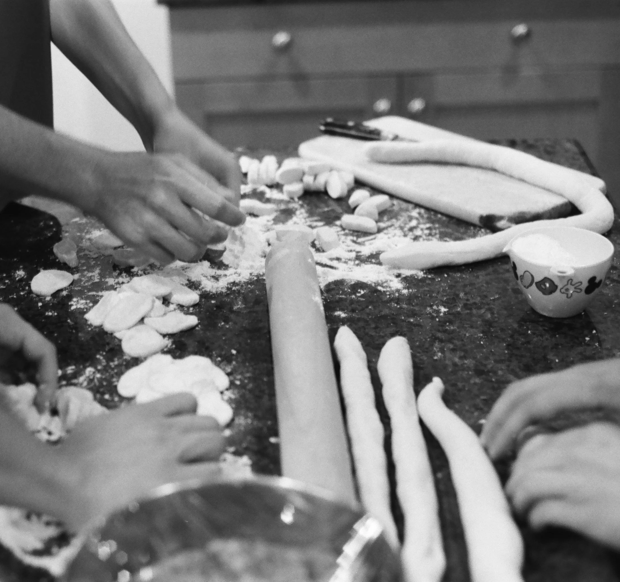 Making Chinese dumplings Bethesda, Md. Pentax ME Super, 50mm f/1.7 SMC Pentax-M, FP4+, 2023.