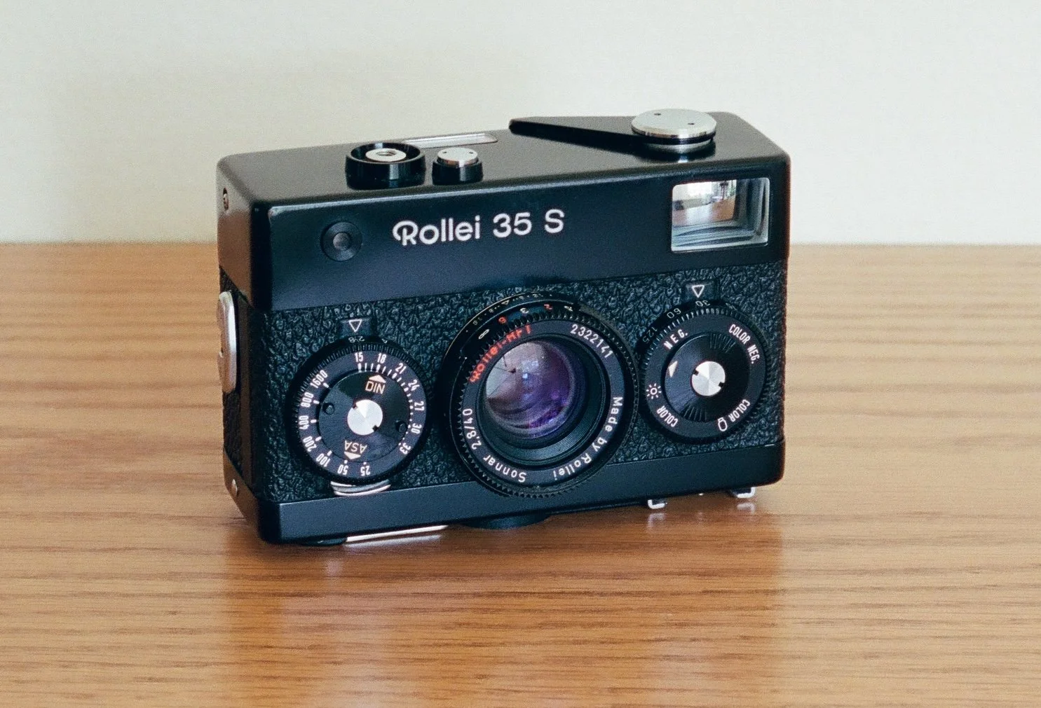 Rollei 35 S, made in Singapore. With its 40mm f/2.8 made-by-Rollei Sonnar lens shown folded.
