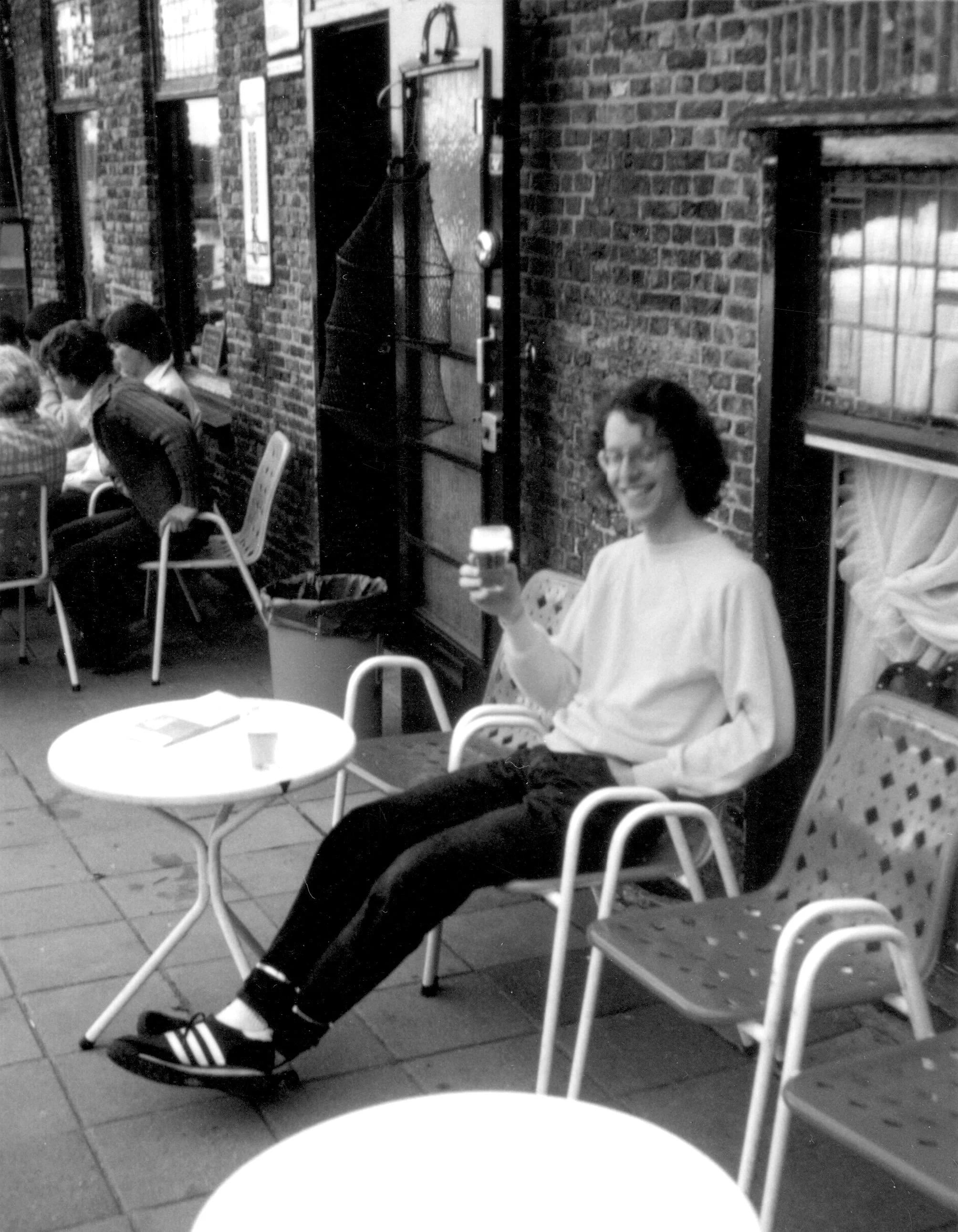 Delft, Netherlands. At the end of a bike ride. A fellow rider made this picture using my Rollei 35 S, 40mm f/2.8 Sonnar, and Kodachrome 64. I photographed the slide onto Tri-X, then made a silver gelatin print. Negative and print: 1979.