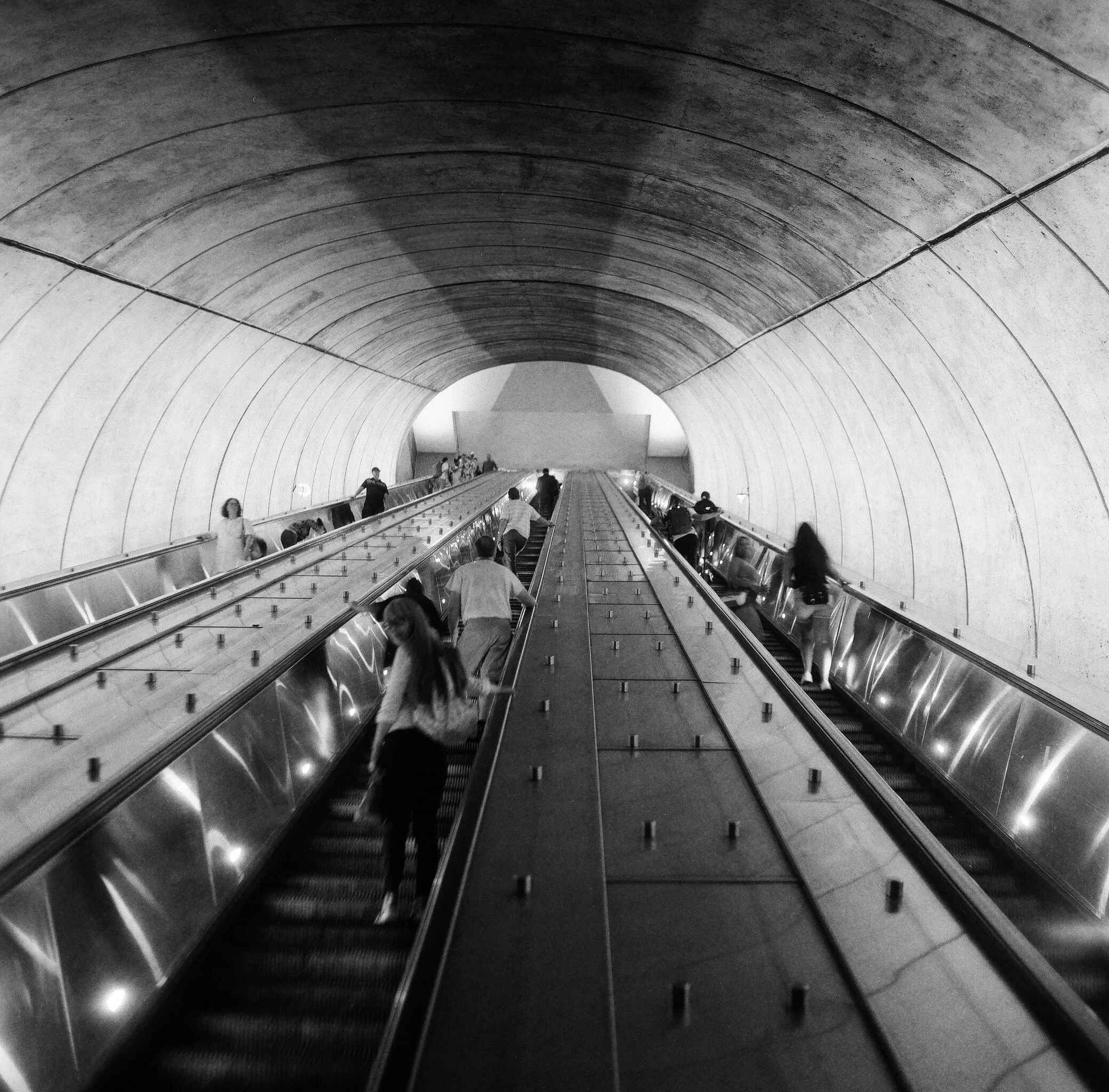 Washington Metro, Bethesda Station. Rollei 35 T, 40mm f/3.5 Tessar, HP5+, 2024.